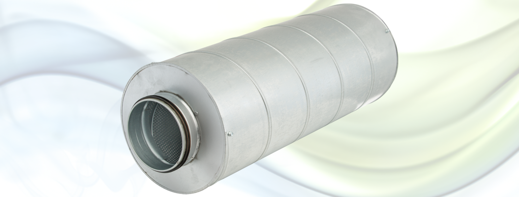 The GGLX 50S is a straight sound attenuator with 50 mm thick mineral wool filling. The sound absorber consists of a perforated sheet steel tube enclosed by end pieces and a sheet steel casing. The space between the tube and casing is filled with attenuating material covered with non-woven fabric as protection against fibre migration.