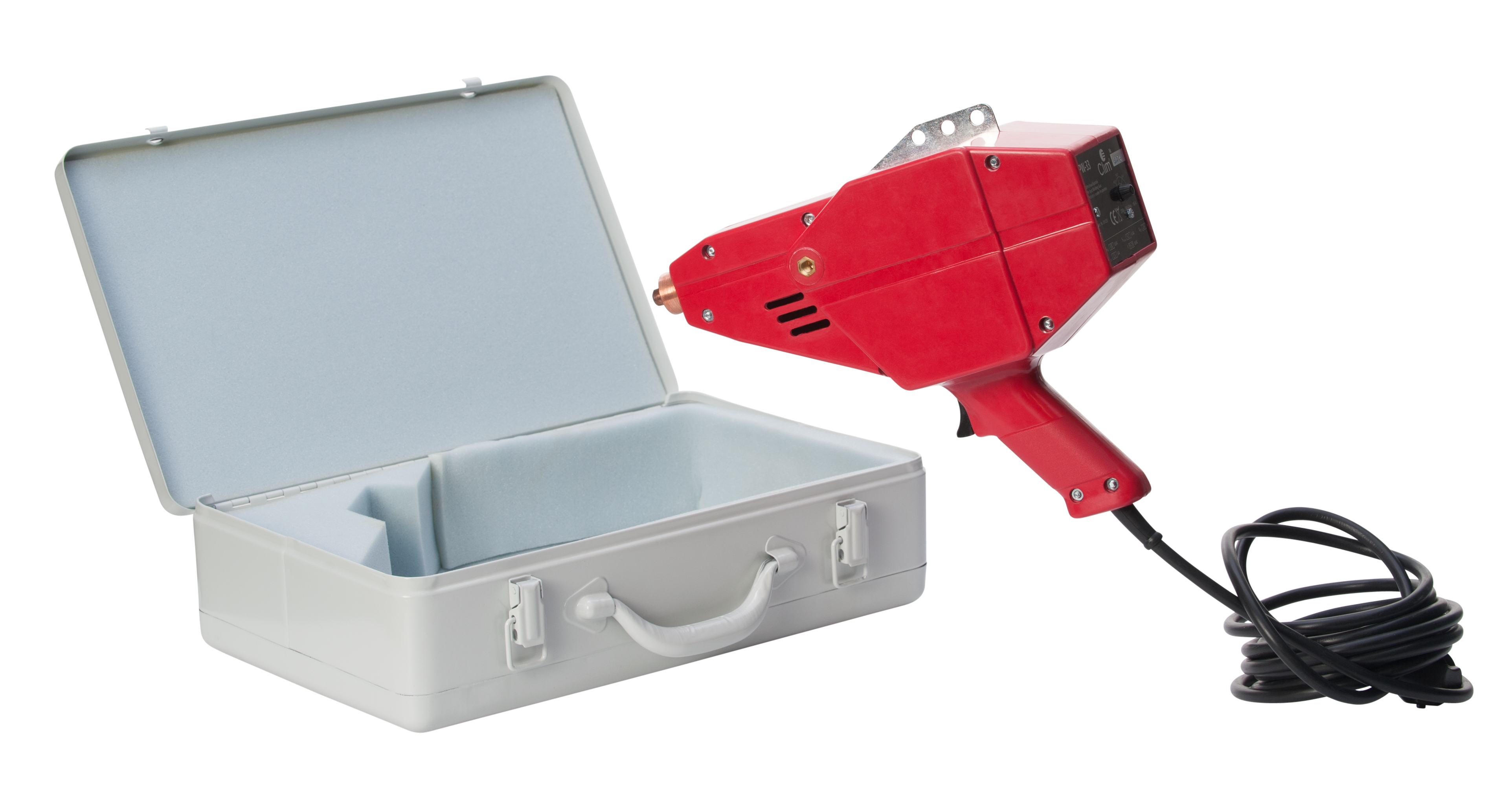 This portable resistance welding apparatus is a first class stud welding gun and has a proven record for reliability in a variety of applications – ranging from workshops to construction sites. It comes with an integrated timer, thereby making a trouble free welding on both thick and thin metal sheets (electro galvanised or not) a distinct possibility.